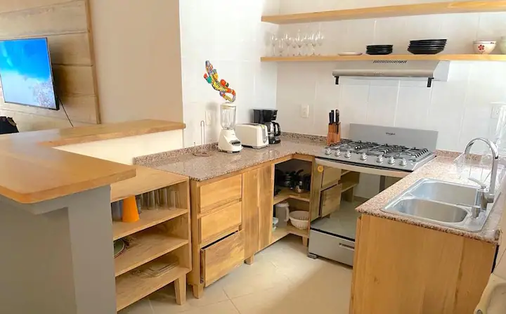 Unit #4 is a thoughtfully designed 2-bedroom, 1 bathroom condo located on the ground floor. Enjoy an open-concept living and kitchen area with a breakfast bar. This fully furnished and tastefully decorated unit features high-quality finishes, air conditioning in every room, and a minimalist tropical aesthetic that blends harmoniously with the surrounding landscape. Earth-tone accents and clean architectural lines make this home both elegant and inviting. There is also a small, enclosed outdoor patio.
