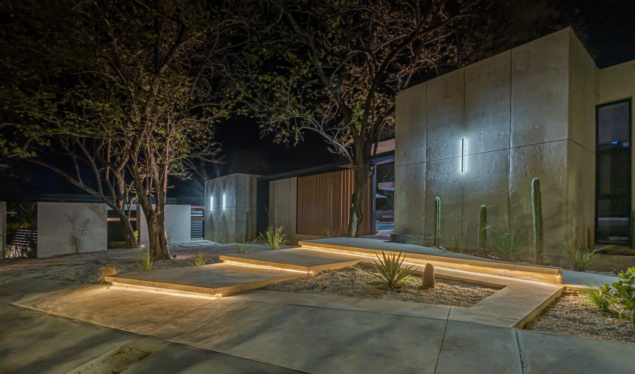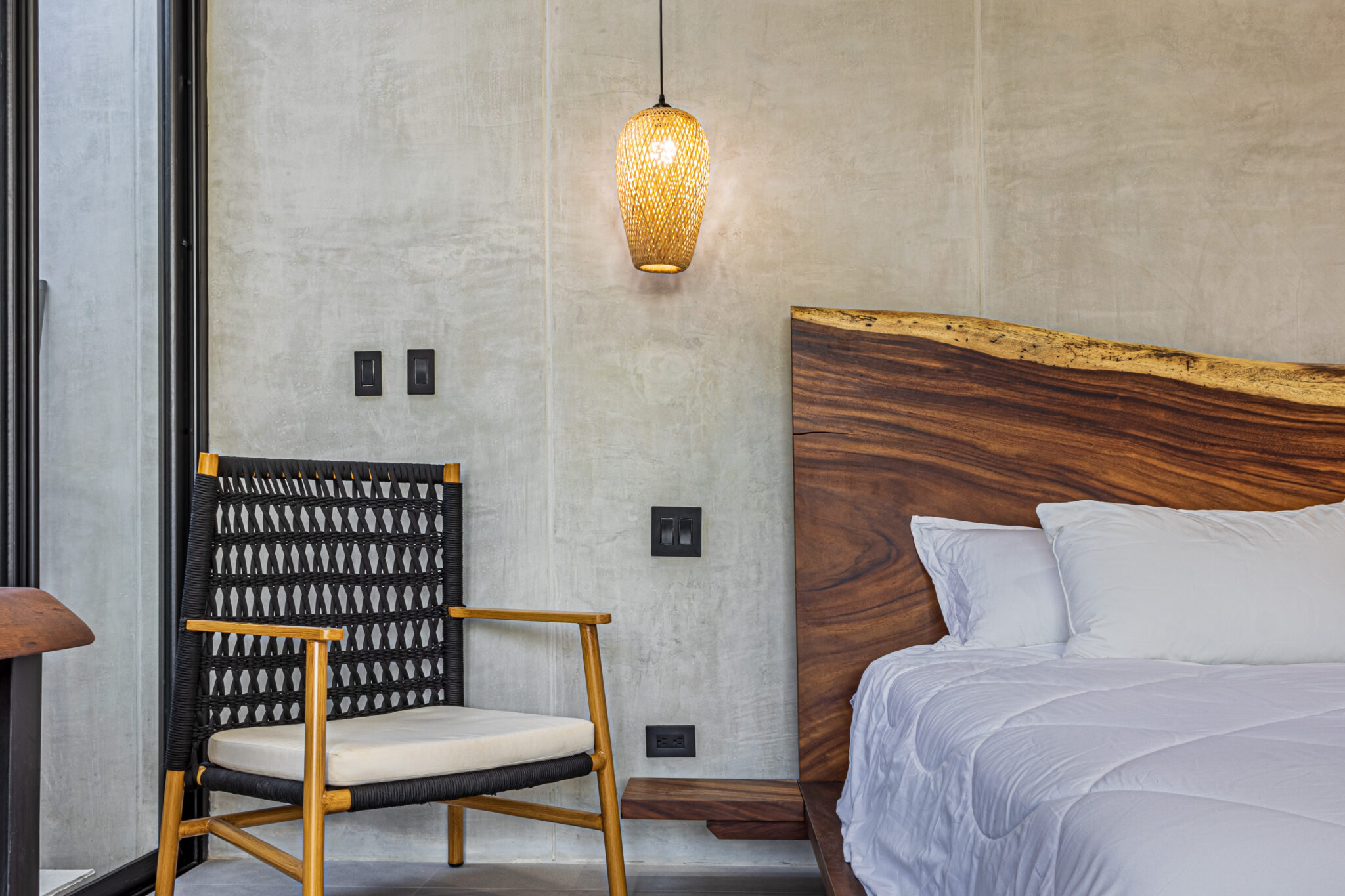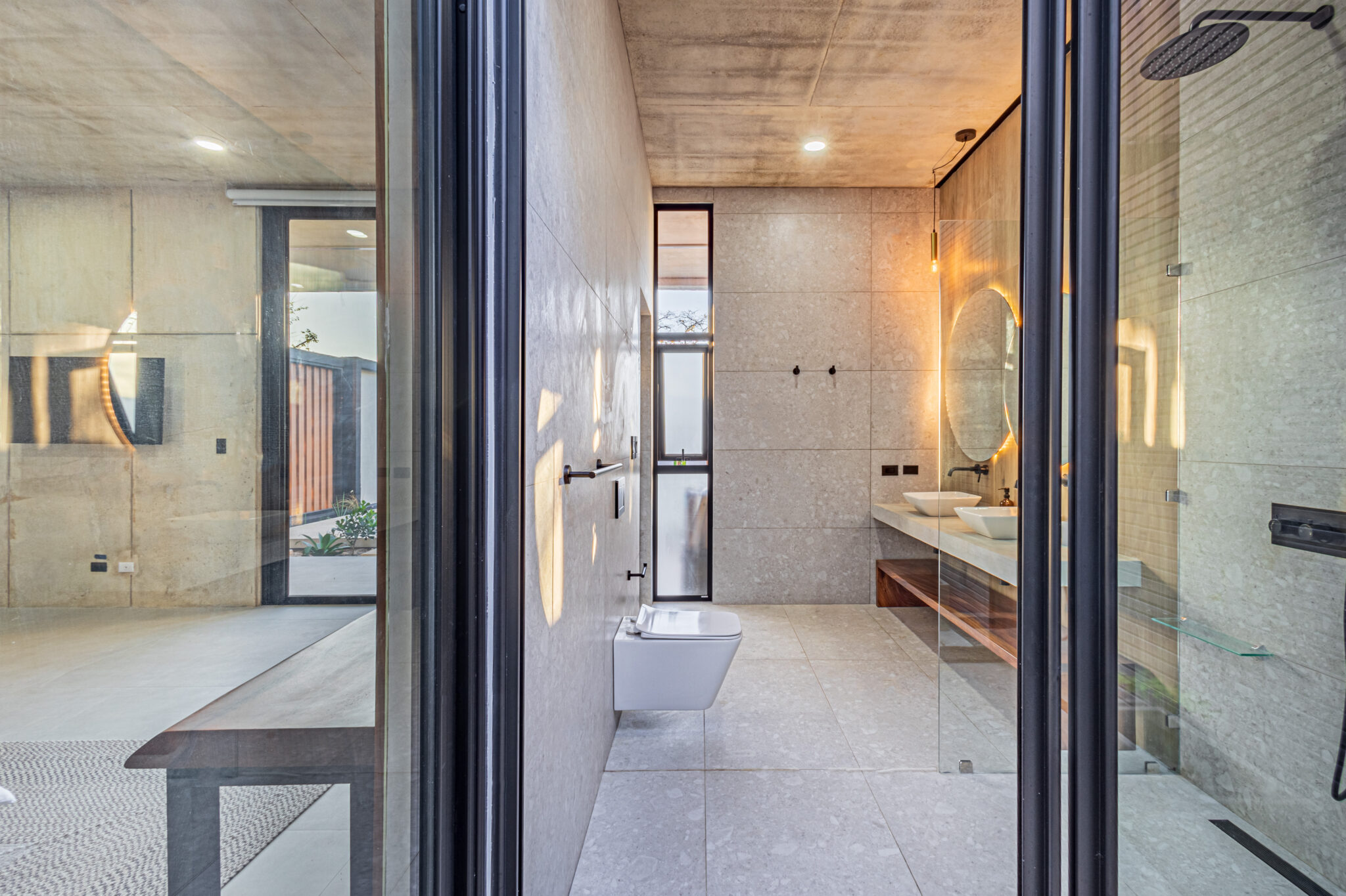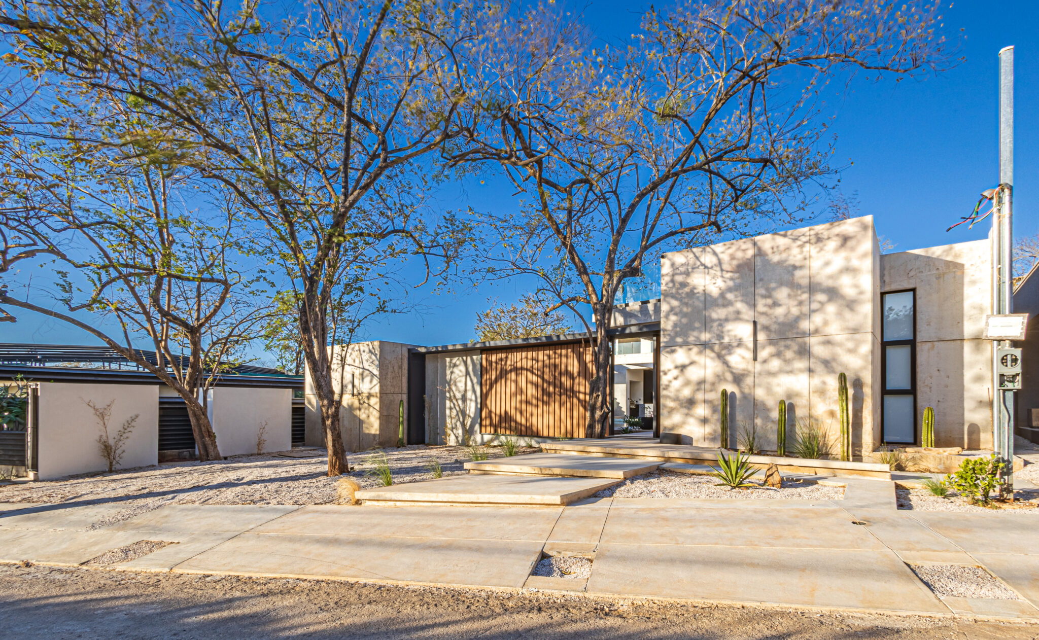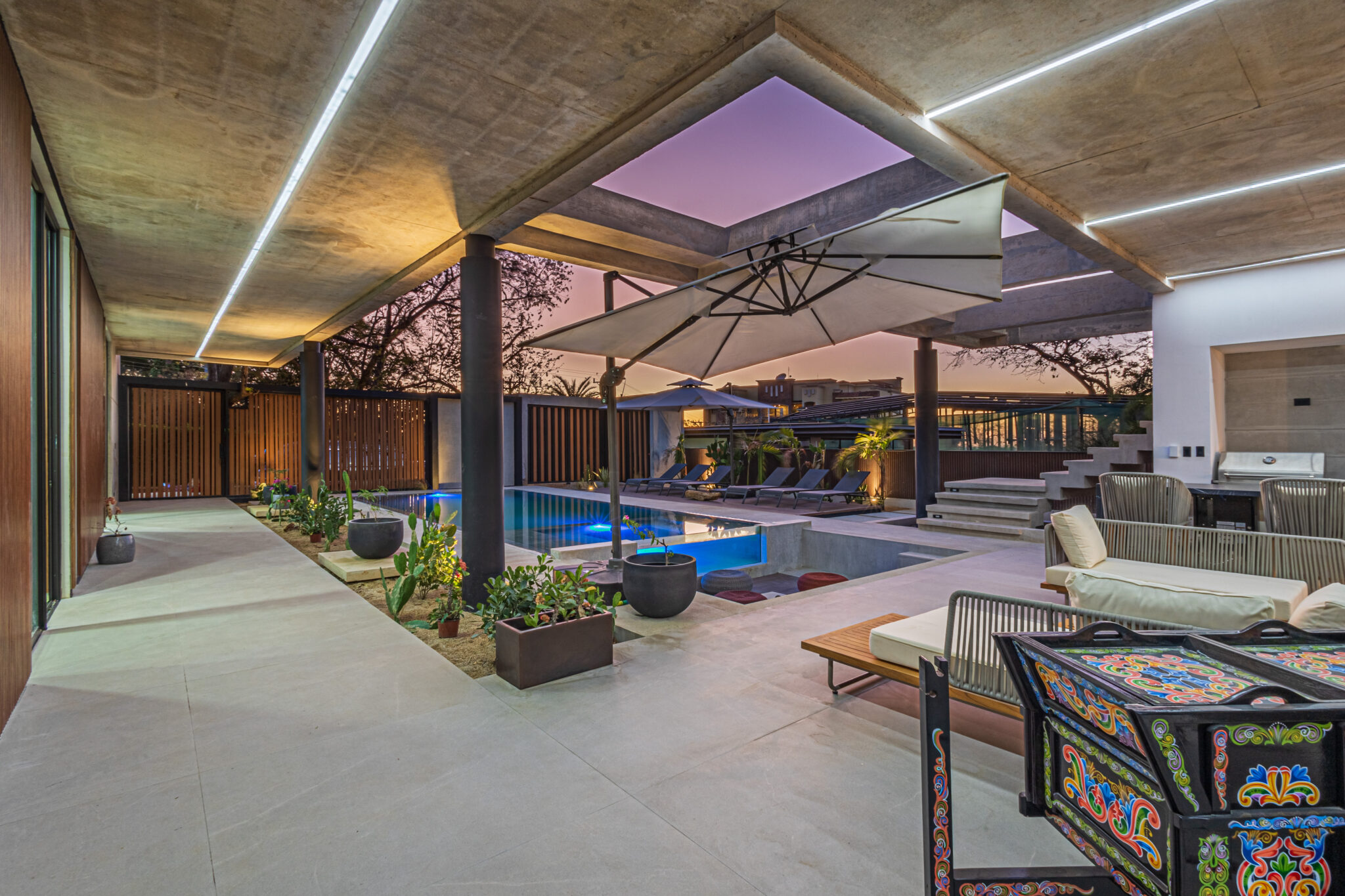 The houses centerpiece is a large pool with surrounding patio that integrates perfectly with the interior living spaces. The pool is the perfect place to relax and unwind while enjoying the coastal ambiance. Floor to ceiling windows throughout allows a lot of light and the chance to enjoy the natural surroundings. The second floor large terrace, offers a peek at the ocean and a perfect space to enjoy amazing sunset colors. The terrace is a private sanctuary that leads to the 2 second story bedrooms. The construction includes polished concrete surfaces that bring a contemporary elegance. The kitchen and bathrooms have beautiful black marble tops along with teak wood accents that create a beautiful balance through the entire home.