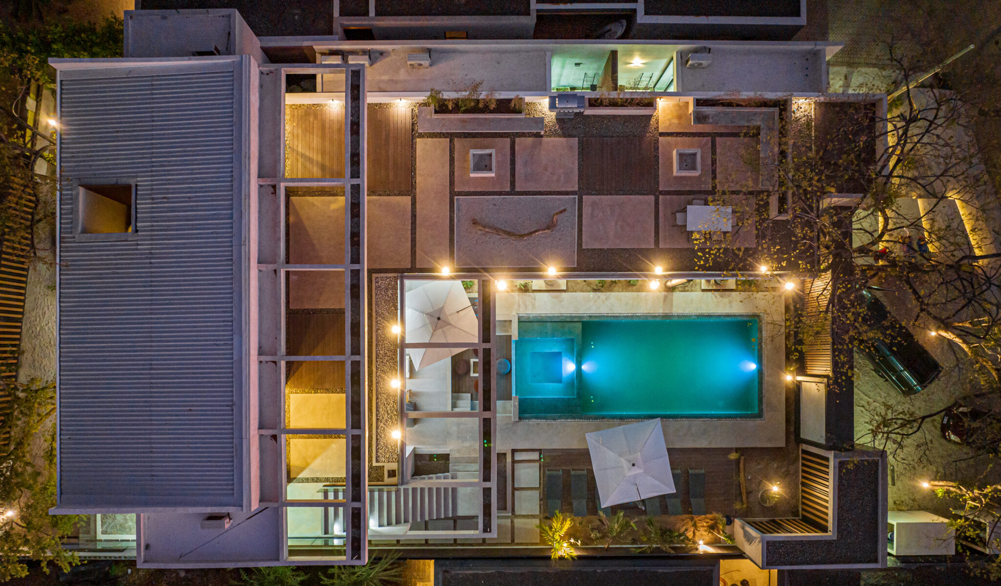 The home features many fine details such as electric blinds, Italian furniture imported from EuroMobilia, concrete slab walls as well as WPC wood composite. The pool features Indonesian green stone (Sukabumi) creating impressive green reflections with sun and a sense of calm refreshing waters. All are top quality materials which require minimum maintenance