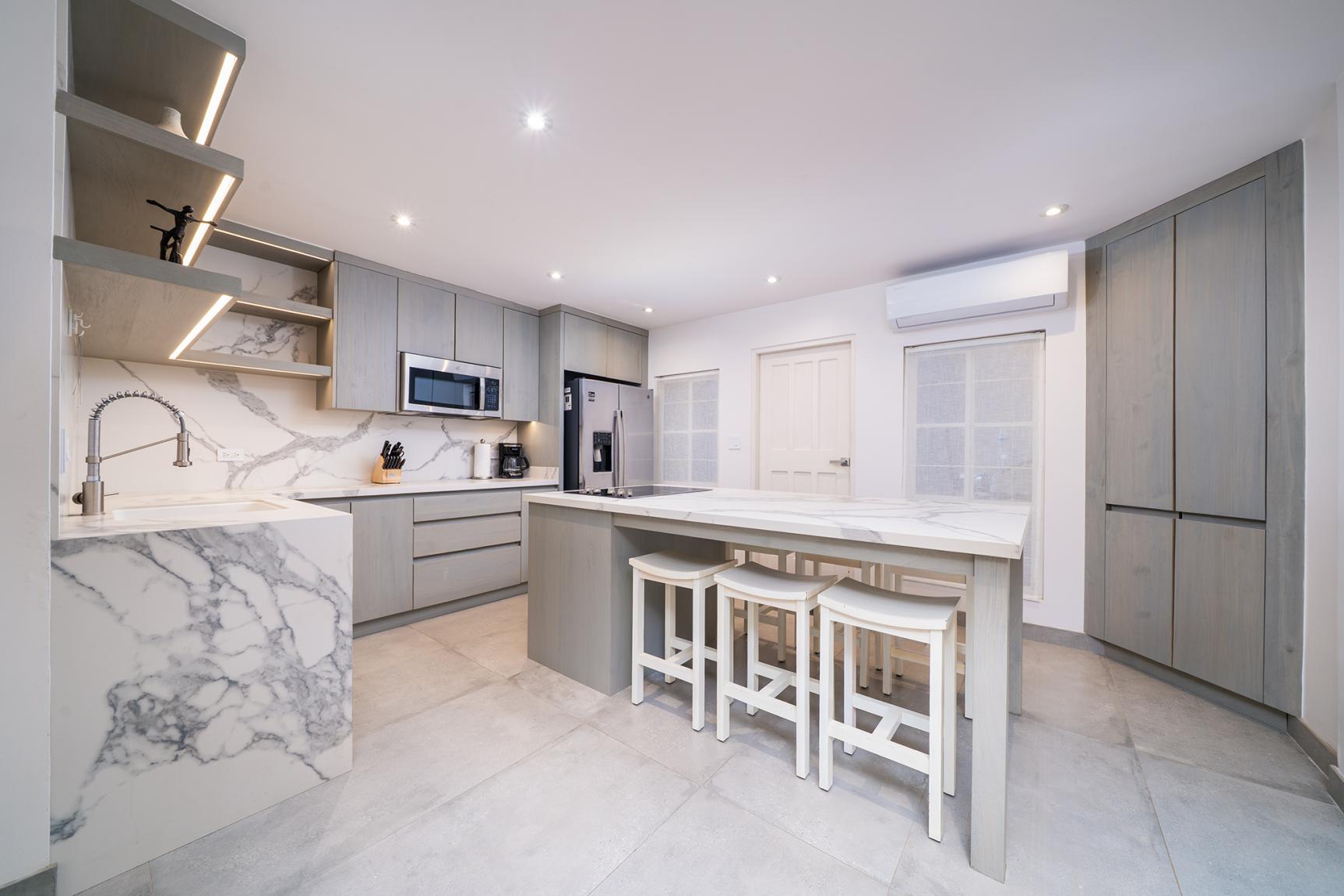 Recently renovated from top to bottom, this 3-bedroom, 3.5-bathroom condo offers 135 m² or1450sq.ft of stylish, functional living space spread over three levels. The unit is being sold furnished and equipped, featuring updated finishes, fresh interiors, and a layout that maximizes both comfort and rental appeal. All three bedrooms are air-conditioned and feature two of them feature their own adjacent private balcony, creating bright, breezy spaces ideal for relaxing or hosting guests. Each bedroom also has its own en-suite or adjacent bathroom, offering added privacy and flexibility for families or vacation rentals. The open-concept kitchen and living area are thoughtfully designed for everyday living and entertaining. Renovations include modern hard-wood cabinetry, imported floors, upgraded fixtures, sleek lighting, and high-quality finishes throughout, making this home 100% move-in ready.