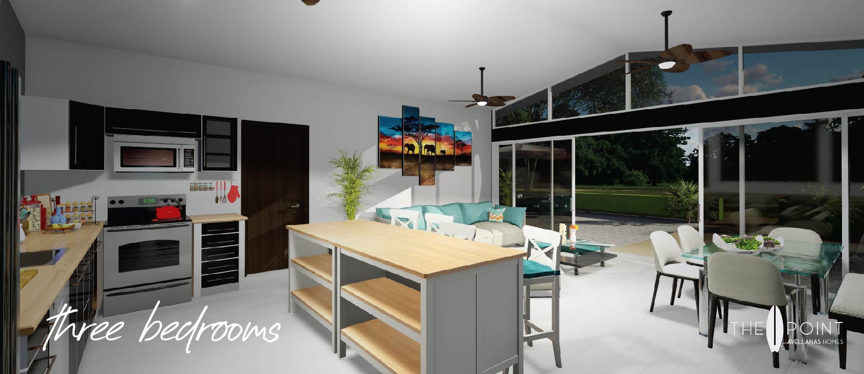 This brand-new villa is expected to be completed in December 2023 and was designed with a modern aesthetic and an open-concept living space, making it the perfect place for entertaining. The kitchen, lounge, and dining areas enjoy plenty of natural light throughout the day and open up to your private patio. The kitchen is well-appointed with modern appliances and makes the ideal spot for exploring culinary adventures. The lounge is graced with large windows, sliding glass doors, and beautifully tiled floors. There is also a half-bath for your guests. Each villa has its own space out front and out back for outdoor living and entertaining.