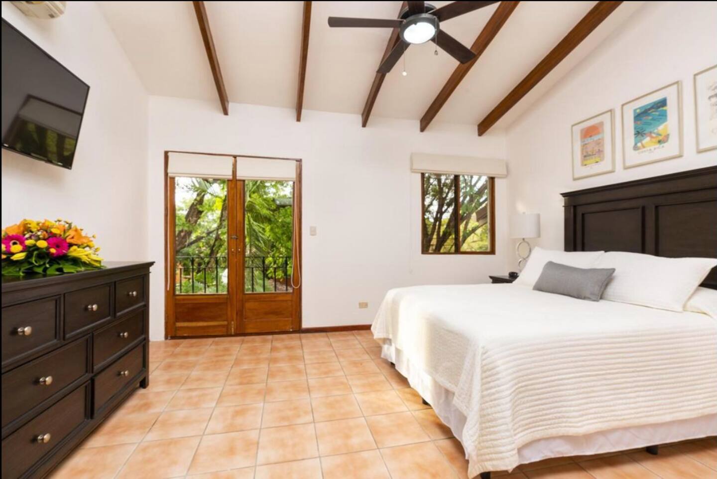 The second floor has an oversized master bedroom that overlooks the lush tropical garden. Enjoy a Juliette balcony with double doors opening out to the common area for great views and breeze. The spacious bathroom is located just outside the master bedroom and has a large tile shower. Enjoy all of the upgrades from top to bottom inside this charming property & well managed community, while keeping the Costa Rican style. Whether it be a home to reside in or a second home with great rentability for return of income while away, this condo has it all!