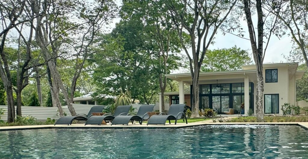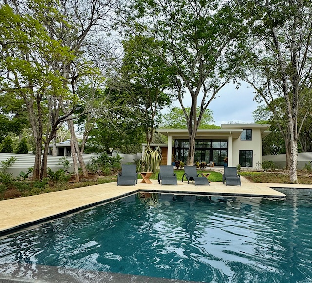 The house sits on a cul-de-sac across from Hotel Capitan Suizo. There is a significant amount of privacy and seclusion, with an amazingly quick walk to the beach (3 minutes on a flat surface) and to Tamarindo center (10 minutes max).